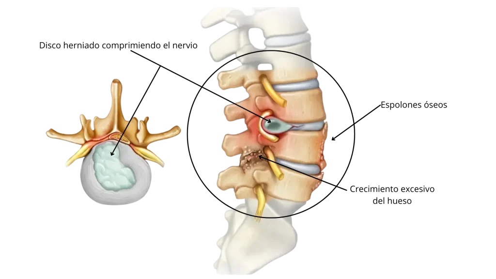 - Hernias discales que comprimen los nervios.